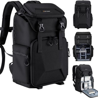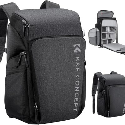 K&F Concept Camera Backpack, Hard Shell Camera Bag, Large Capacity Photography Backpack with 15.6″ Laptop Compartment & Tripod Holder & Rain Cover, Bags for DSLR SLR Cameras and Accessories