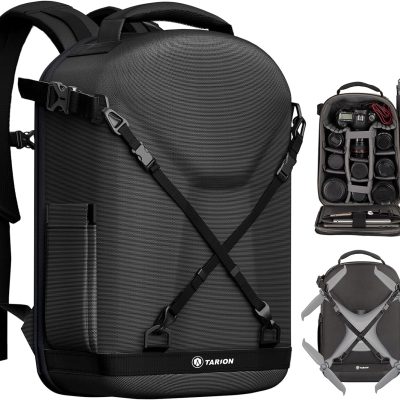 TARION Hardshell Camera Backpack Bag: 3-side Hard Case Camera Backpack Photography Bag DSLR Backpack Bag with Waterproof Raincover Laptop/Tripod Compartment for Men Women Photographers Black